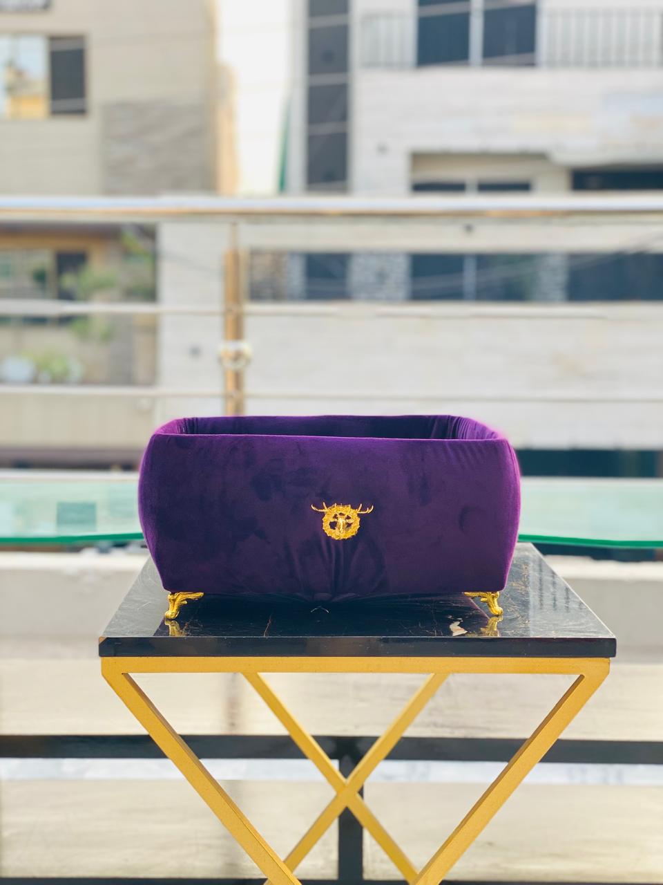 Elevate your perfume display with this stunning velvet organizer. Designed to hold your favorite fragrances, it keeps them neat, organized, and within easy reach. The golden deer-style buckle and velvet finish add a luxurious touch to your dresser or vanity. Its spacious design fits multiple bottles, making it perfect for any collection. With stylish golden legs, it doubles as a decorative piece for your room. Whether for yourself or as a gift, this organizer is the perfect blend of beauty and function!