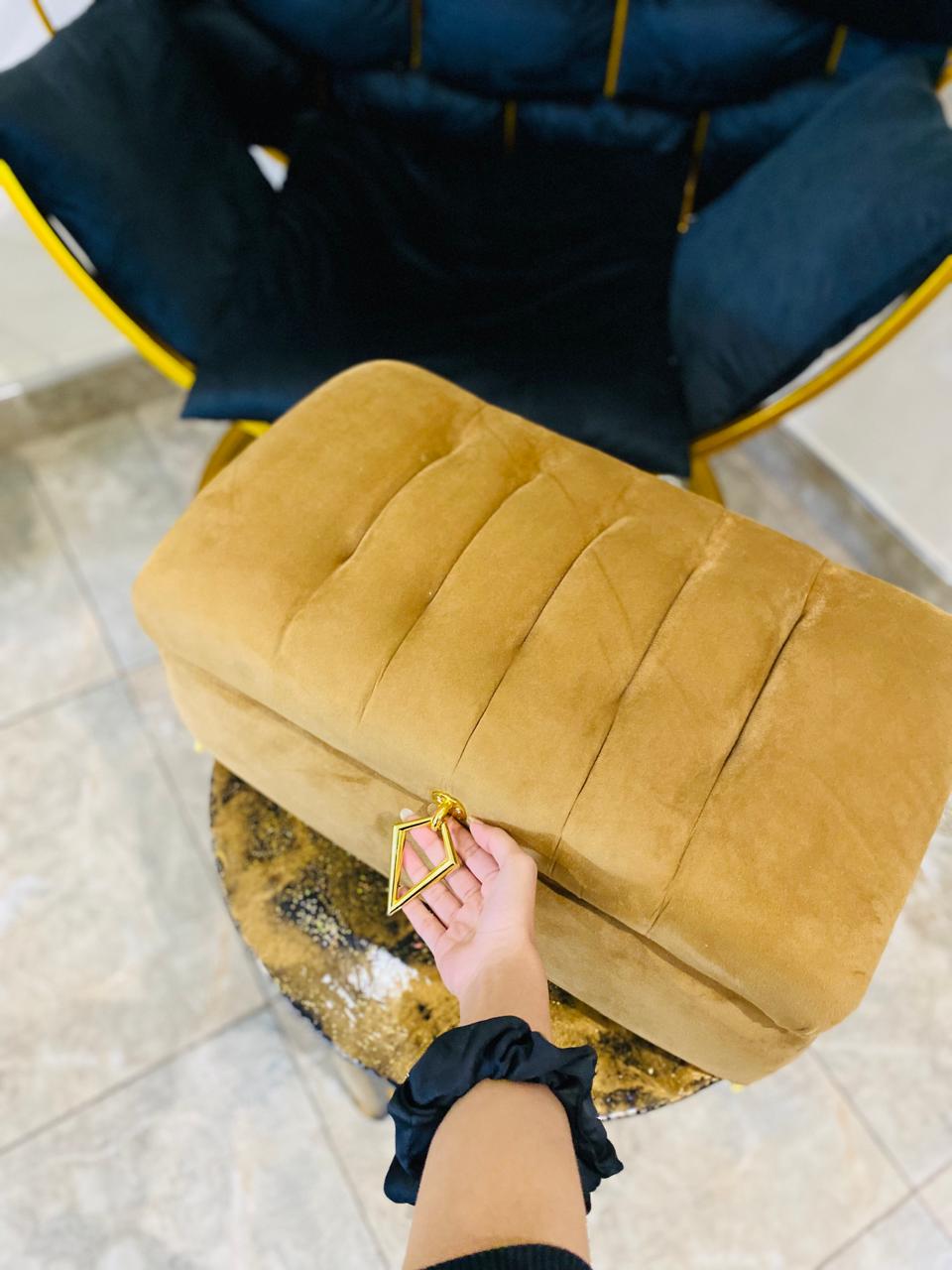 This velvet storage box is perfect for organizing and decluttering your space. Its spacious interior can hold clothes, toys, books, or other essentials, keeping your room neat and tidy. The elegant design makes it more than just a storage solution—it doubles as a stylish decor piece. The sturdy metal handle allows for easy lifting, while the metal stands add a luxurious touch to your furniture. Use it in your bedroom, living room, or office for both functionality and elegance. Whether for storing items or enhancing your room's aesthetic, this box is a must-have for any modern home.